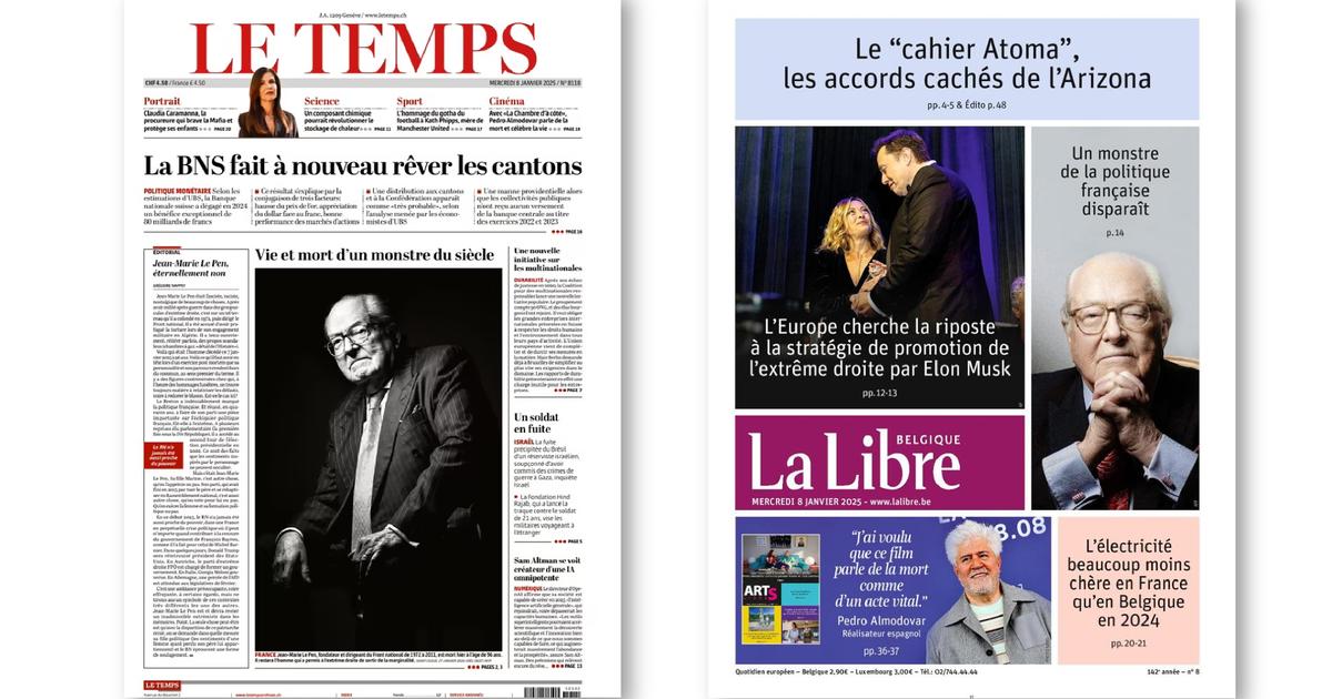 En Suisse, Le Temps évoque d’abord l’«embarras» des journalistes français, «car il est mal vu de dire du mal des morts». Le correspondant du journal genevois à Paris affirme que «la droitisation de certains titres français permettra peut-être des éloges encore impossibles il y a quelques années». L’article revient ensuite sur l’itinéraire de ce «personnage controversé» qui «restera l’homme qui a permis à l’extrême droite française de sortir de la marginalité dans laquelle elle était depuis 1945». Et s’il a «marqué de son empreinte la politique française», Jean-Marie Le Pen a aussi, parfois, «handicapé son camp avec ses déclarations d’un autre temps».