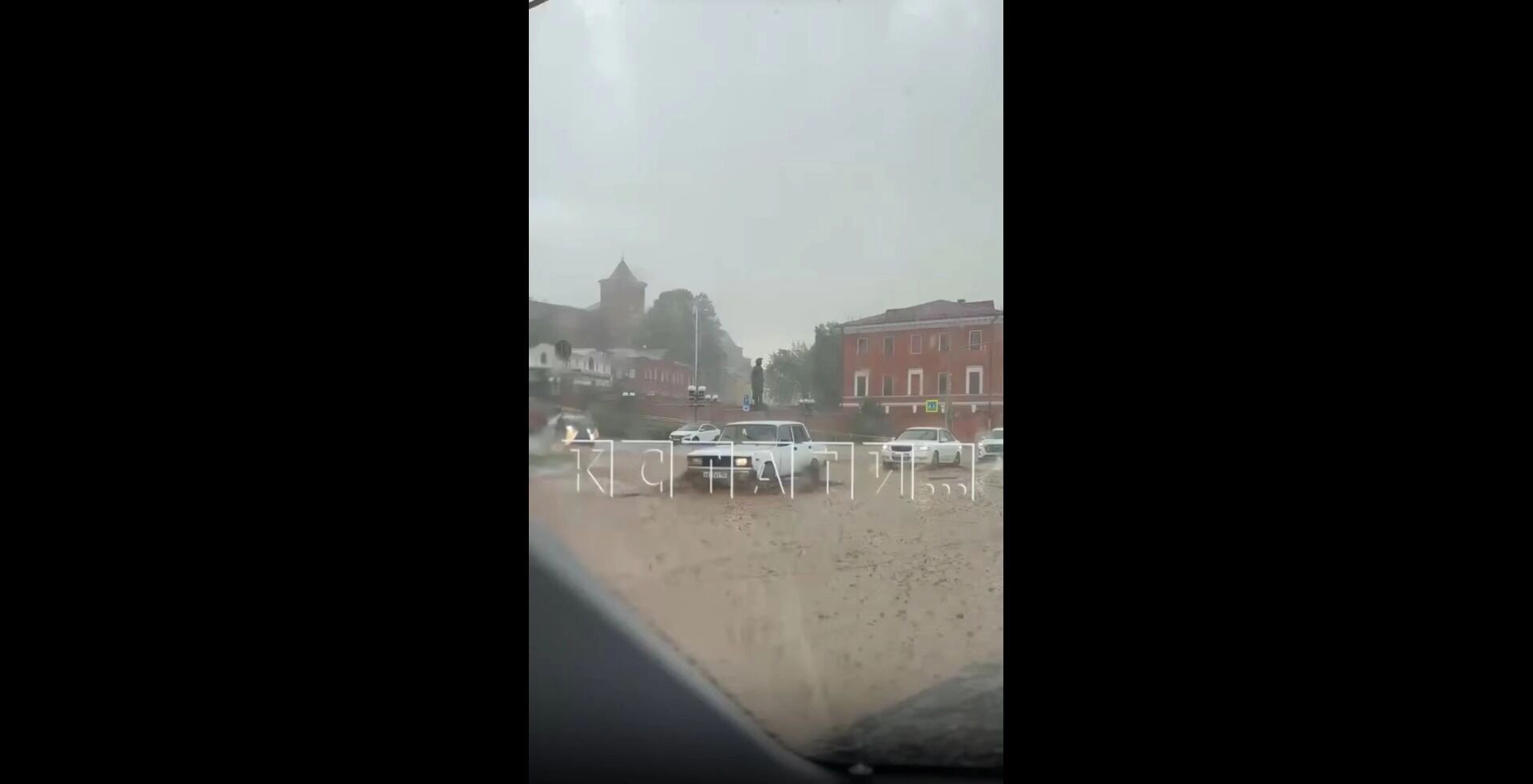 Нечто странное случилось на Нижне-Волжской набережной. Улицу не только затопило: на нее вдобавок потекли потоки земли, глины и стройматериалов из расположенной выше Зачатьевской башни кремля. На месте образовалось грязное месиво.