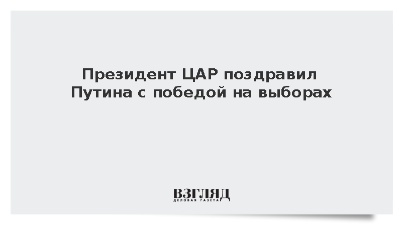 В своем послании глава ЦАР от себя и от лица своего народа поздравил Путина с переизбранием, передает ТАСС.
