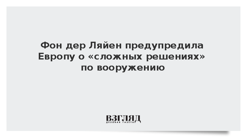 Европе потребуется мужество для принятия «сложных решений» по милитаризации, чтобы «сдерживать Россию» и обеспечивать безопасность, заявила глава Еврокомиссии Урсула фон дер Ляйен.