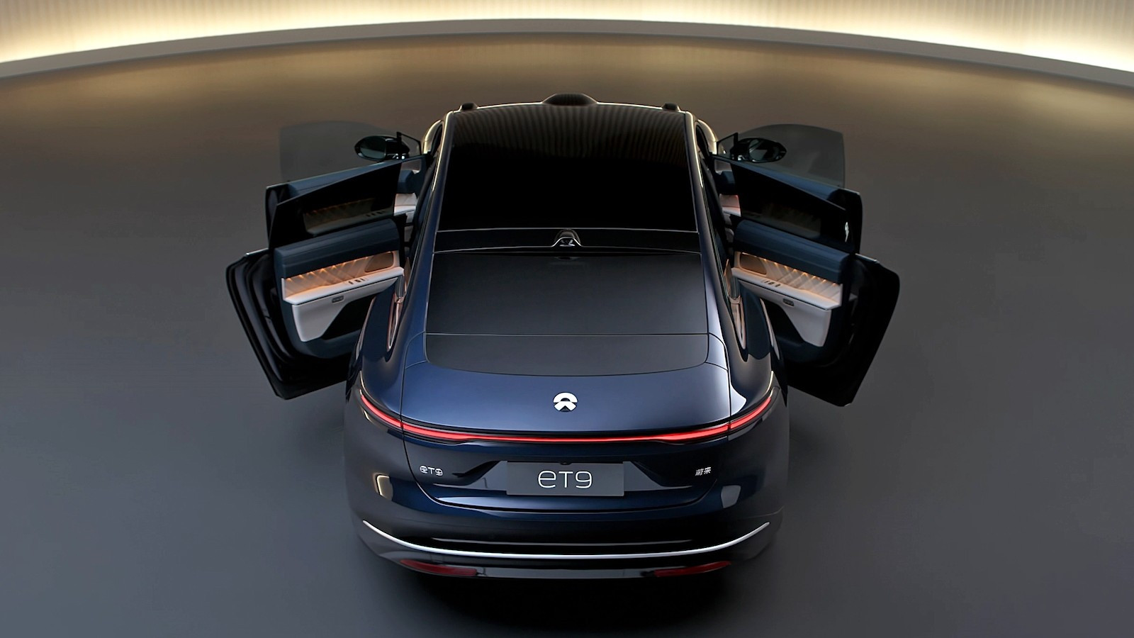 Габаритная длина Nio ET9 — 5325 мм, ширина — 2017 мм, высота — 1621 мм, колёсная база — 3250 мм. Дорожный просвет в стандартном положении подвески — 200 мм, глубина преодолеваемого брода — 690 мм. Коэффициент аэродинамического коэффициента cx = 0,243. Снаряженная масса — 2700 кг. Заявленная жёсткость кузова на кручение составляет 52 600 Нм/градус — это больше, чем у подавляющего большинства суперкаров. В короткую крышку багажника интегрирован выдвижной спойлер, создающий дополнительную прижимную силу на высоких скоростях. Крыша у Nio ET9 — стеклянная, с продольным ребром жёсткости и выдвижными солнцезащитными шторками.