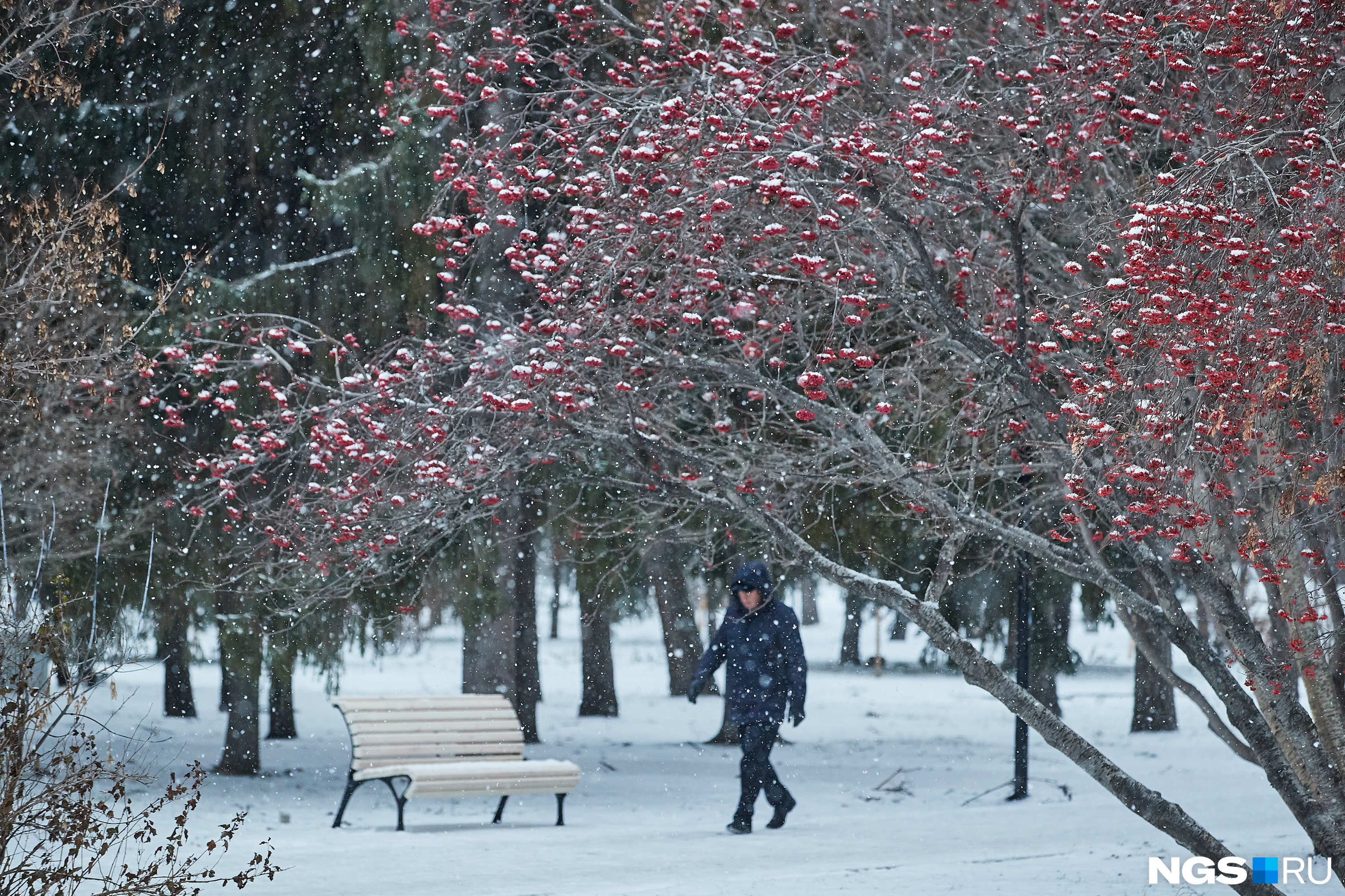 Фотожурналист НГС Александр Ощепков начал утро с прогулки по заснеженному городу. К третьей декаде ноября синоптики ждут серьезного похолодания — до -20 градусов по ночам.