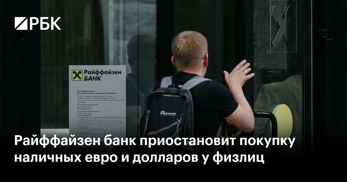 Райффайзен банк с 1 августа временно прекратит прием валюты — евро и долларов США — от физических лиц в кассах банка, говорится в сообщении на сайте финансовой организации.