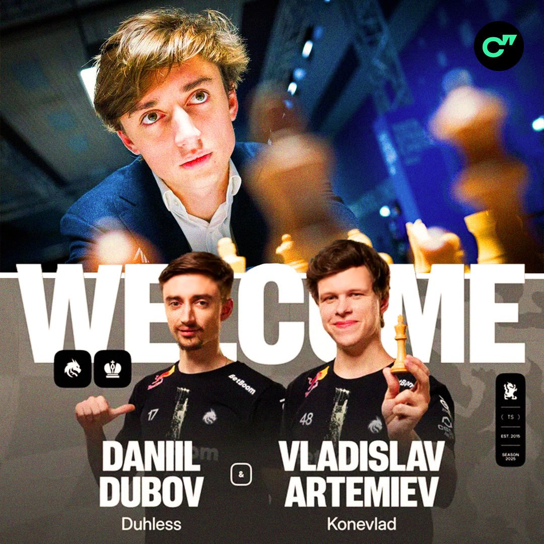 ⚡️ ♟ Организация Team Spirit подписала шахматных гроссмейстеров Даниила Дубова и Владислава Артемьева – они представят команду на Esports World Cup с призовым фондом $1,5 млн