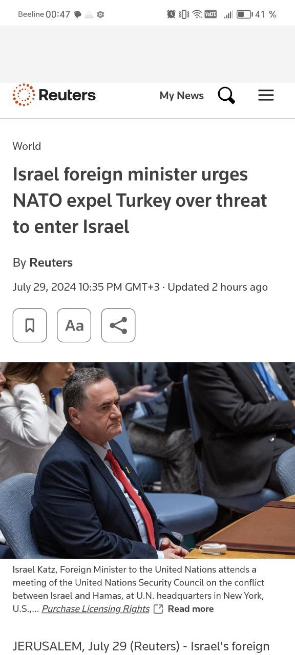 ✔️Министр иностранных дел Израиля призывает НАТО изгнать Турцию из альянса