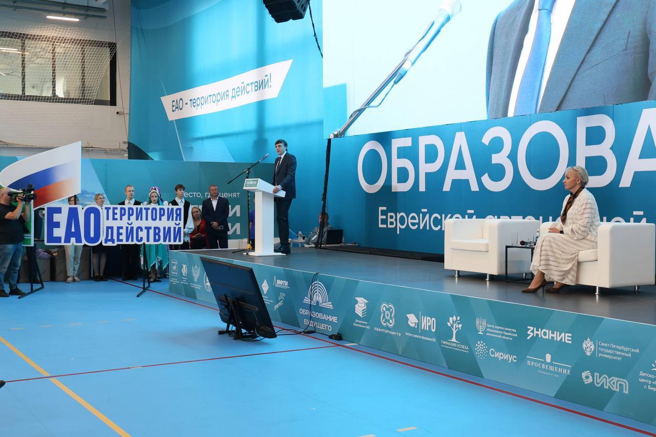 📌 Ключевым событием поездки стало общение главы ведомства с педагогами региона в рамках августовского совещания педагогических работников Еврейской автономной области. Мероприятие впервые прошло в формате международного образовательного форума «Образование будущего».