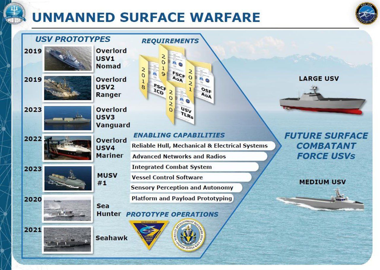 ● Пока мы рассуждаем о безэкипажных катерах, ВМС США перешли к строительству беспилотных кораблей. На картинке — почти все незасекреченные крупные надводные безэкипажные средства, разрабатываемые для ВМС США. Часть уже "в железе".