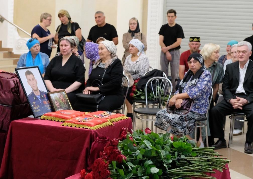 Под траурную музыку гроб взяли на руки и унесли из зала. Чиновники тем временем узнавали у родителей Руслана, нужна ли им помощь.