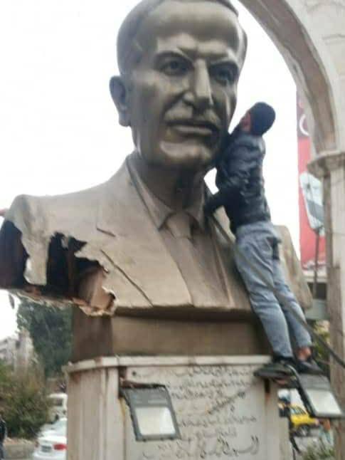 Жители Джараманы (это большой район на окраине Дамаска) снесли памятник отцу нынешнего главы Сирии — Хафезу Асаду. Этот район населен палестинцами и друзами (друзы — одна из народностей Сирии, в руках у мужчин, которые сносят памятник, как раз друзский флаг). Во время прежней войны друзы поддерживали Асада, воюя против боевиков ИГ* и «ХТШ»**.
