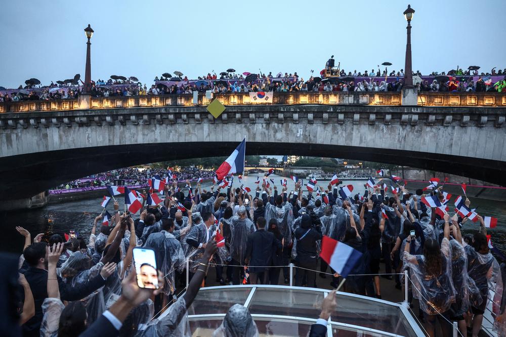 Fêtes parisiennes le long de la Seine : pluie et lumières pour la cérémonie d'ouverture. Emmanuel Macron hué