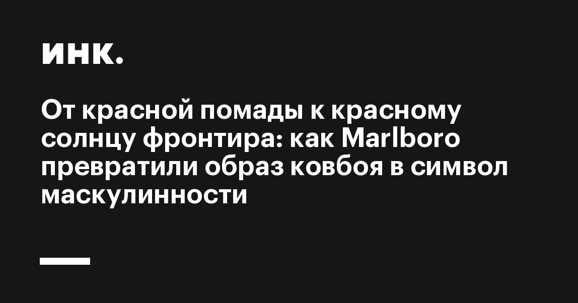 В начале 1950-х Marlboro продавались как «женские сигареты» — с фильтром, красной полосой на мундштуке (чтобы скрывать следы помады) и мягким вкусом. Но в 1954 году производитель Philip Morris решил кардинально изменить стратегию: целевая аудитория стала мужской, а акценты — на силе, свободе и маскулинности.