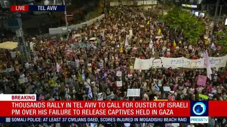 Активисты снова вышли на улицы города с требованием отставки кабинета премьера Нетаньяху из-за его неспособности решить проблему с освобождением заложников.