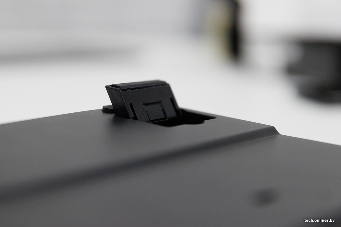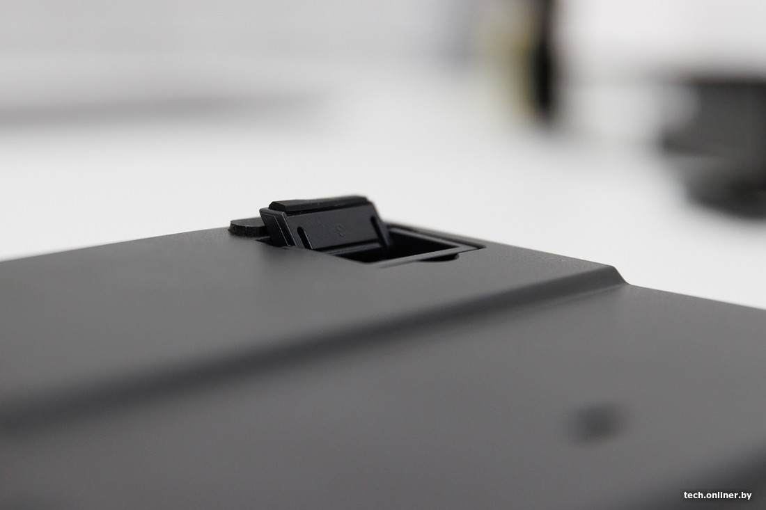 Принцип подключения тот же: USB-кабель, радиоканал или Bluetooth. Тип подключения можно выбрать трехпозиционным механическим переключателем, который теперь размещен на левом торце. Корпус полностью из пластика, полные характеристики можно посмотреть в Каталоге.