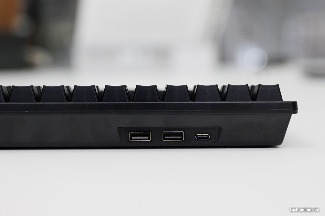 Помимо этого, есть пара дополнительных выходов USB-A, отдельно включатель и отдельно выбор радиоканала или Bluetooth (подключение к Mac или Win можно выбрать через комбинацию кнопок на самой клавиатуре).