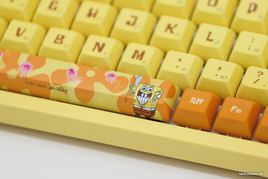 Завершающим участником подборки станет проводной Губка Боб. Точнее, клавиатура Akko 3098S SpongeBob. Остановимся на ней коротко, так как это скорее фановый вариант, нежели устройство для работы. Почему? Об этом чуть ниже.