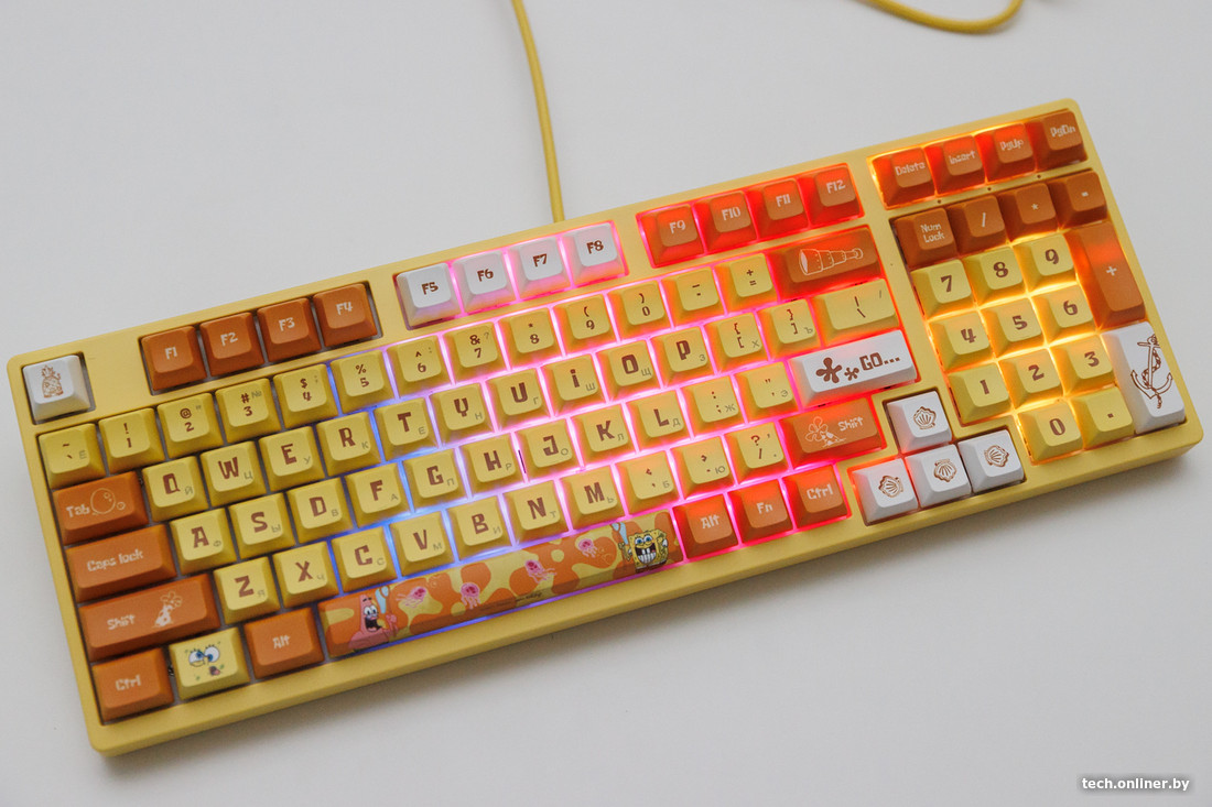 Главные «фишки» Akko 3098S SpongeBob — цветовая гамма и действительно чарующий звук (поэтому в офис такую лучше не приносить).