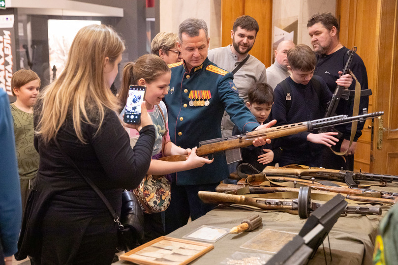 «Посетители экспозиции увидели личные вещи красноармейцев, оружие, документы (пропуска и удостоверения), агитационные листовки, предметы солдатского быта. Гости Музея Победы могли подержать в руках пистолеты-пулеметы и винтовки того времени: ППШ-41, ППС-43, карабин и винтовку системы Мосина, самозарядную винтовку СВТ-40, пулемет максим, а также пистолеты Нагана и ТТ», – пояснили в пресс-службе Музея Победы.