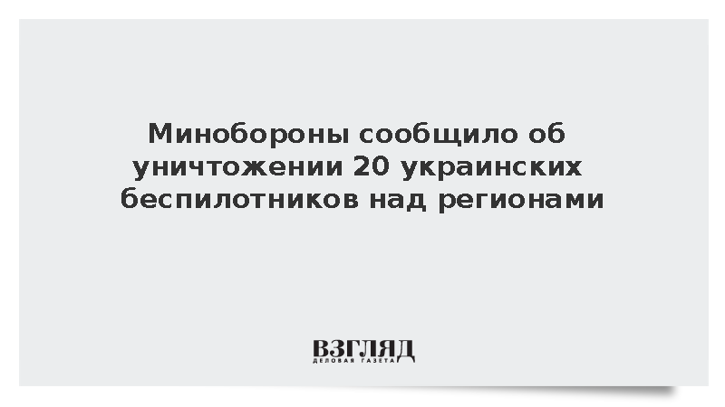 Системы противовоздушной обороны России уничтожили 20 украинских беспилотников самолетного типа с 17.00 до 20.00 мск, передает Минобороны России.