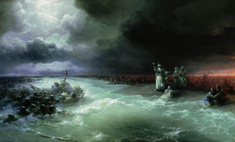 «И погнались за ними Египтяне, и все кони с колесницами фараона, и всадники, и все войско его, и настигли их, расположившихся у моря при Пи-Гахирофе пред Ваал-Цефоном. Фараон приблизился, и сыны Израилевы оглянулись, и вот, Египтяне идут за ними: и весьма устрашились. <…> И сказал Господь Моисею: <…> подними жезл твой и простри руку твою на море, и раздели его, и пройдут сыны Израилевы среди моря по суше. <…> И гнал Господь море сильным восточным ветром всю ночь и сделал море сушею, и расступились воды. И пошли сыны Израилевы среди моря по суше: воды же были им стеною по правую и по левую сторону. Погнались Египтяне, и вошли за ними в средину моря все кони фараона, колесницы его и всадники его. <…> И сказал Господь Моисею: простри руку твою на море, и да обратятся воды на Египтян, на колесницы их и на всадников их. <…> И к утру вода возвратилась в свое место <…> и покрыла колесницы и всадников всего войска фараонова, вошедших за ними в море; не осталось ни одного из них»
