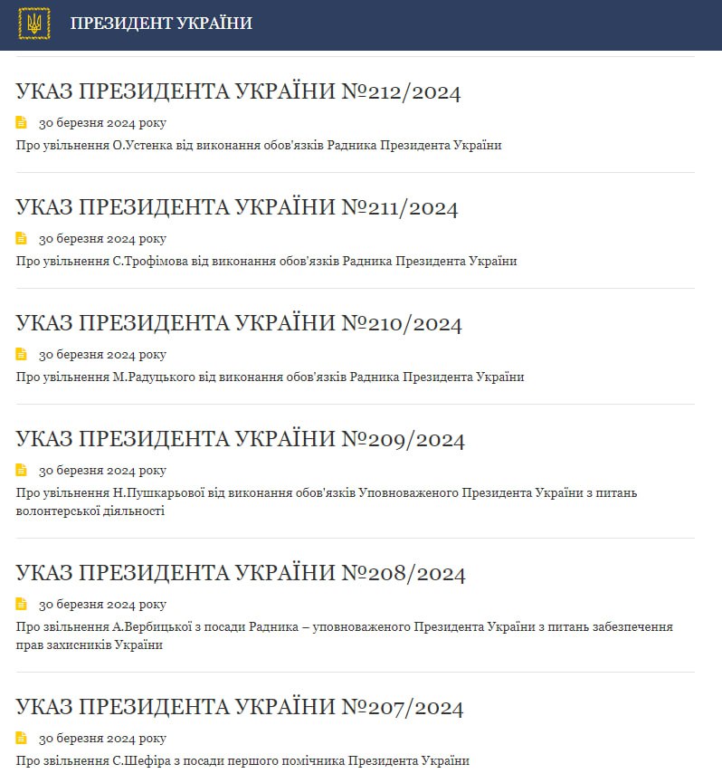 Π£ΠΊΠ°Π·Ρ ΠΎΠΏΡΠ±Π»ΠΈΠΊΠΎΠ²Π°Π½Ρ Π½Π° ΠΎΡΠΈΡΠΈΠ°Π»ΡΠ½ΠΎΠΌ ΡΠ°ΠΉΡΠ΅ Π³Π»Π°Π²Ρ Π£ΠΊΡΠ°ΠΈΠ½Ρ.