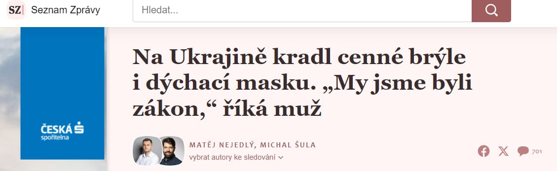 За службу в иностранной армии суд может приговорить его максимум к пяти годам заключения, но за мародерство ему грозит от 15 до 25 лет или пожизненное. Президент может дать разрешение чешским гражданам воевать на украинской стороне. Но обвиняемый, по имеющимся данным, такого разрешения не получал, отмечается в статье.