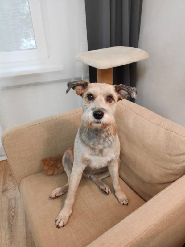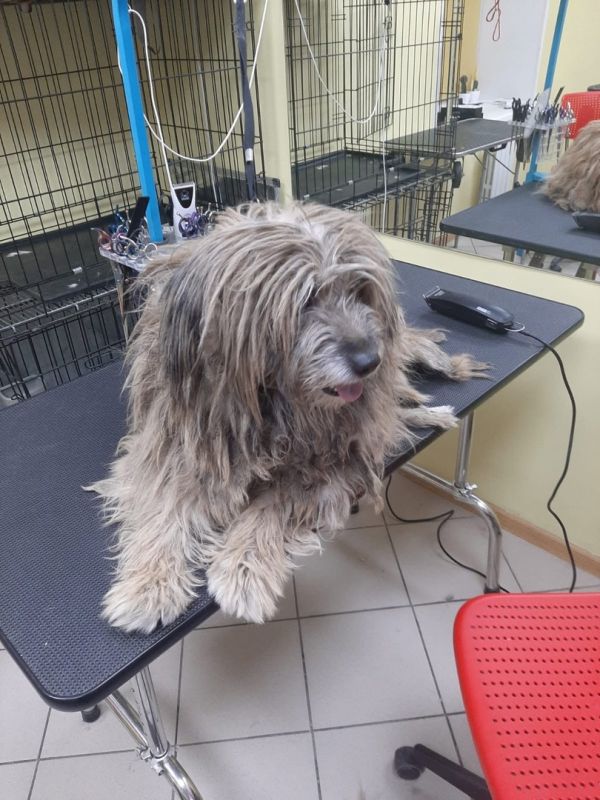 Волонтер забрала собаку и практически сразу отвезла её на стрижку. С худого тельца сняли невероятное количество шерсти, собачку отмыли — она оказалась девочкой, которой дали имя Плюша. Собаку простерилизовали, поставили ей прививки и начали искать дом. Так Плюша переехала в Питер.