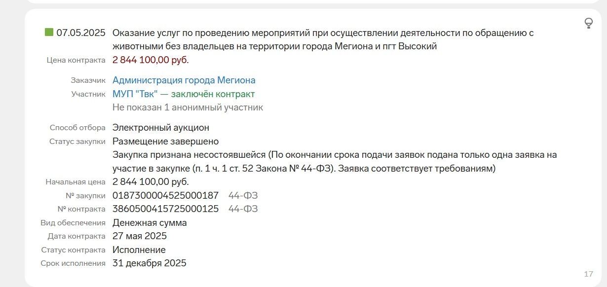 Как пояснили в Управлении общественных связей администрации Мегиона, отловом собак занимаются сотрудники участка временного содержания животных МУП «ТВК». Контракт был разыгран весной этого года. Сумма составила более 2,8 млн рублей.