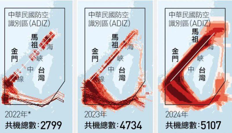 Инфографика усиления китайской военной активности вокруг Тайваня в период 2022-2024 гг.