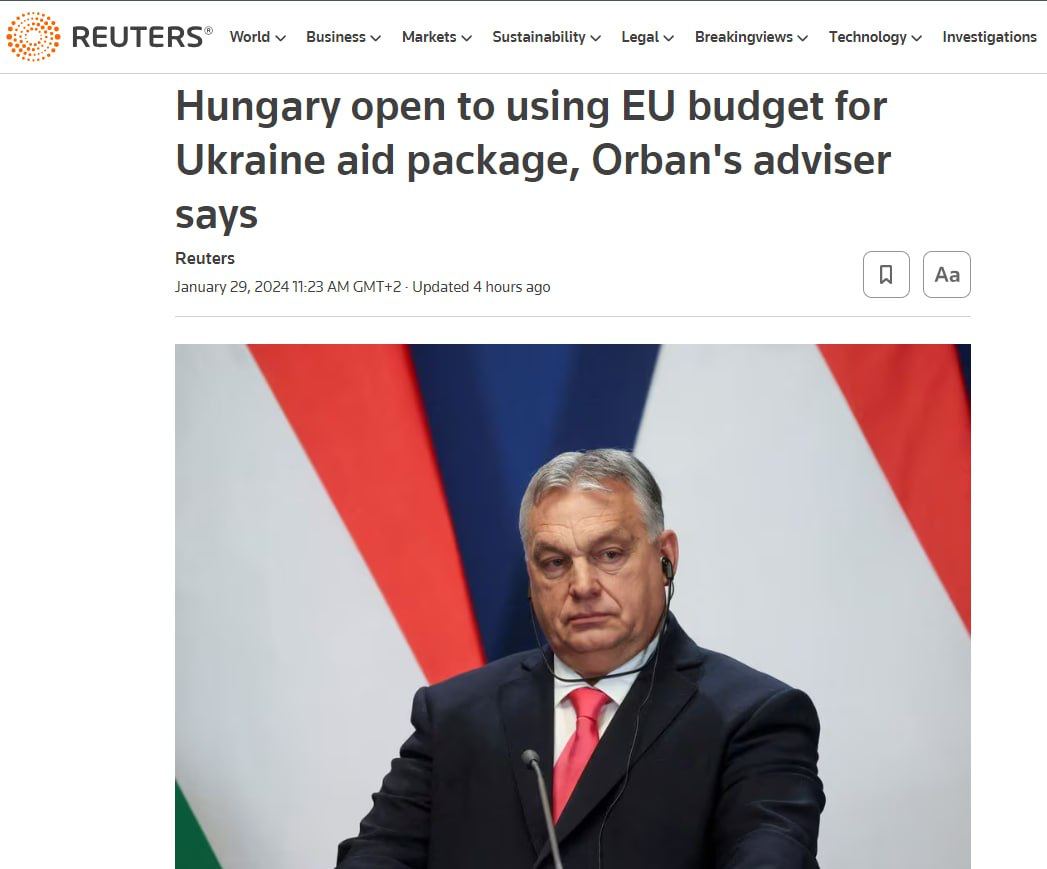 Сегодня Будапешт заявил о готовности к компромиссу, позволяющем финансировать предлагаемый пакет помощи Европейского Союза для Украины в преддверии саммита (намечен на четверг).