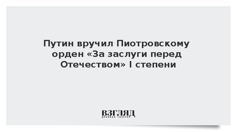 Пиотровский получил награду за значительный вклад в развитие российской культуры и искусства, а также за многолетнюю плодотворную деятельность. Руководитель Эрмитажа стал полным кавалером ордена «За заслуги перед Отечеством».