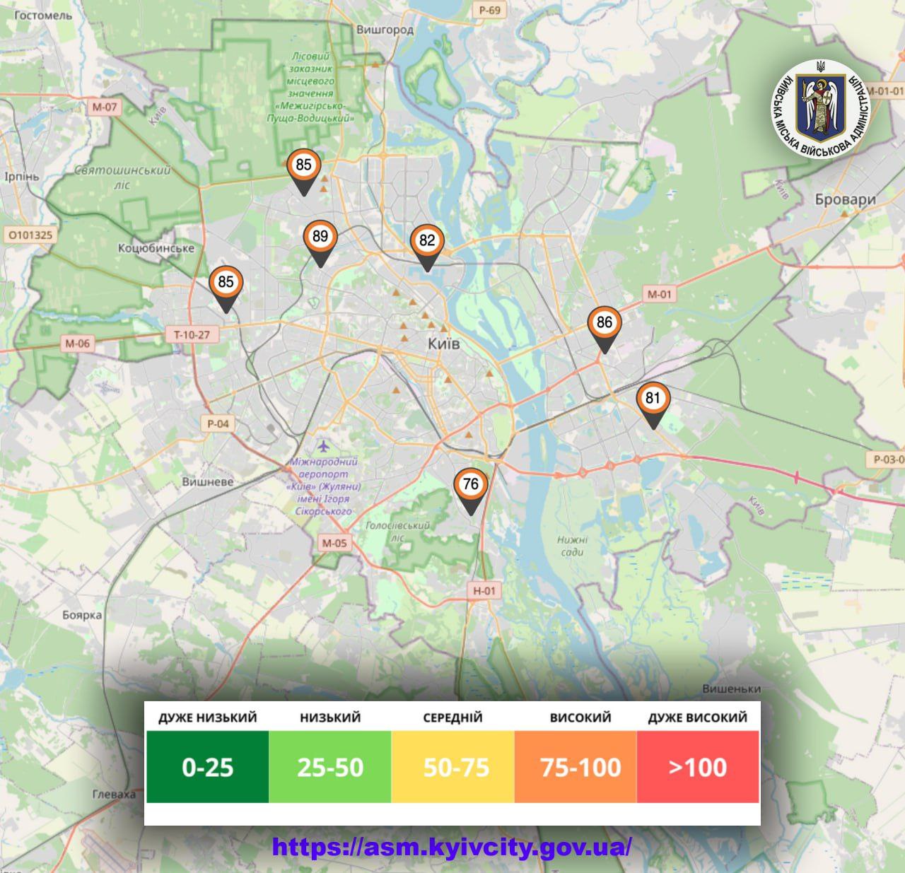 Наибольший уровень загрязнения воздуха фиксируется в Кировоградской, Днепропетровской, Черкасской, Херсонской и Донецкой областях. Также на качество воздуха в Киеве влияют пожары в экосистемах.