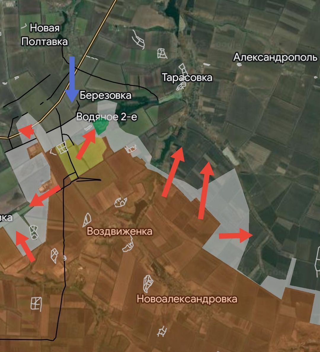 Подразделения ВС РФ атакуют позиции ВСУ на восточной окраине Малиновки, восстанавливают контроль над Водяным Вторым, продвинулись в направлении Тарасовки и Зелёного Поля из района Барановки.