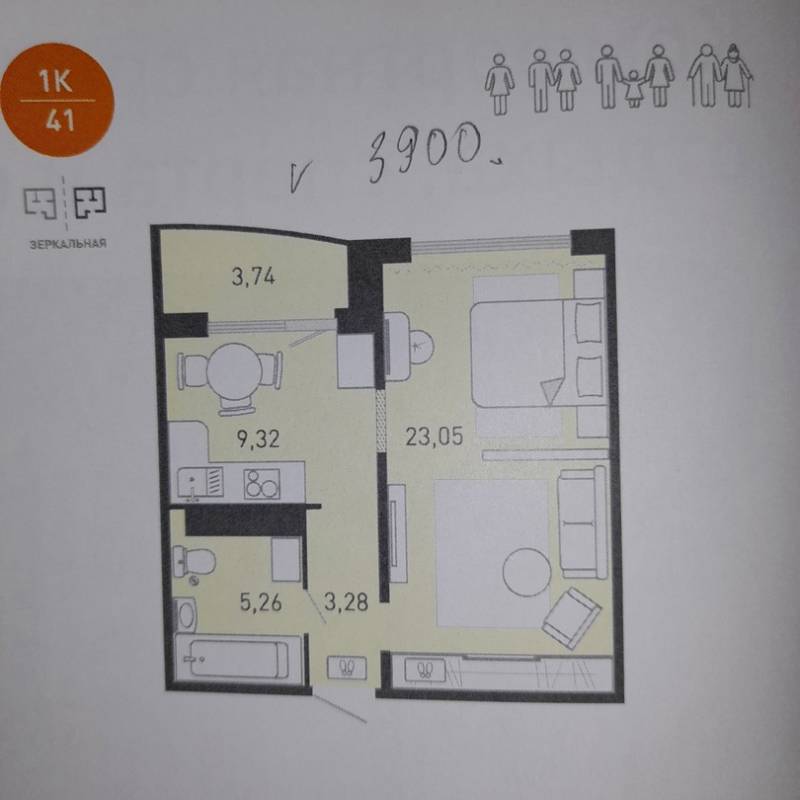 В офисе продаж меня встретил ипотечный брокер и куча свободных менеджеров — покупателей, кроме меня, не было. Один из них предложил посмотреть студию 26,7 м² за 2 600 000 Р и однушку 41 м² за 3 900 000 Р. Все квартиры были в улучшенной черновой отделке: стены оштукатурены, проводка и розетки разведены.