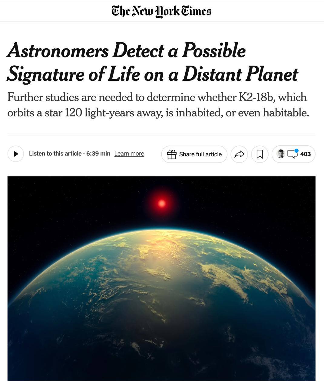 ΠΠ° ΠΏΠ»Π°Π½Π΅ΡΠ΅ K2-18b, ΠΊΠΎΡΠΎΡΠ°Ρ Π²ΡΠ°ΡΠ°Π΅ΡΡΡ Π²ΠΎΠΊΡΡΠ³ Π·Π²Π΅Π·Π΄Ρ Π² 120 ΡΠ²Π΅ΡΠΎΠ²ΡΡ Π³ΠΎΠ΄Π°Ρ ΠΎΡ ΠΠ΅ΠΌΠ»ΠΈ, Π½Π°ΡΠ»ΠΈ ΠΌΠΎΠ»Π΅ΠΊΡΠ»Ρ Π΄ΠΈΠΌΠ΅ΡΠΈΠ»ΡΡΠ»ΡΡΠΈΠ΄Π° ΠΈ Π΄ΠΈΠΌΠ΅ΡΠΈΠ»Π΄ΠΈΡΡΠ»ΡΡΠΈΠ΄Π°, ΠΊΠΎΡΠΎΡΡΠ΅ Π½Π° ΠΠ΅ΠΌΠ»Π΅ ΠΏΡΠΎΠΈΠ·Π²ΠΎΠ΄ΡΡΡΡ ΡΠΎΠ»ΡΠΊΠΎ ΠΆΠΈΠ²ΡΠΌΠΈ ΠΎΡΠ³Π°Π½ΠΈΠ·ΠΌΠ°ΠΌΠΈ β ΠΌΠΎΡΡΠΊΠΈΠΌΠΈ Π²ΠΎΠ΄ΠΎΡΠΎΡΠ»ΡΠΌΠΈ.
