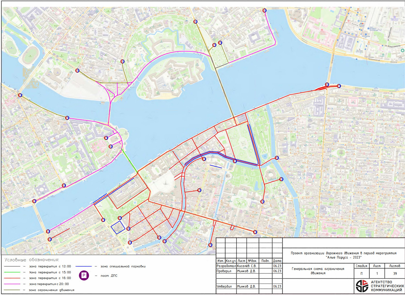 Праздник выпускников «Алые паруса» изменит схему движения в центре Петербурга в ближайшие выходные. Комитет по транспорту публикует список ограничений и перекрытий, которые ожидают водителей с 23 по 25 июня.