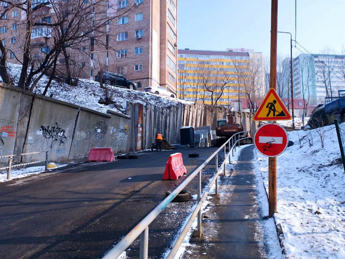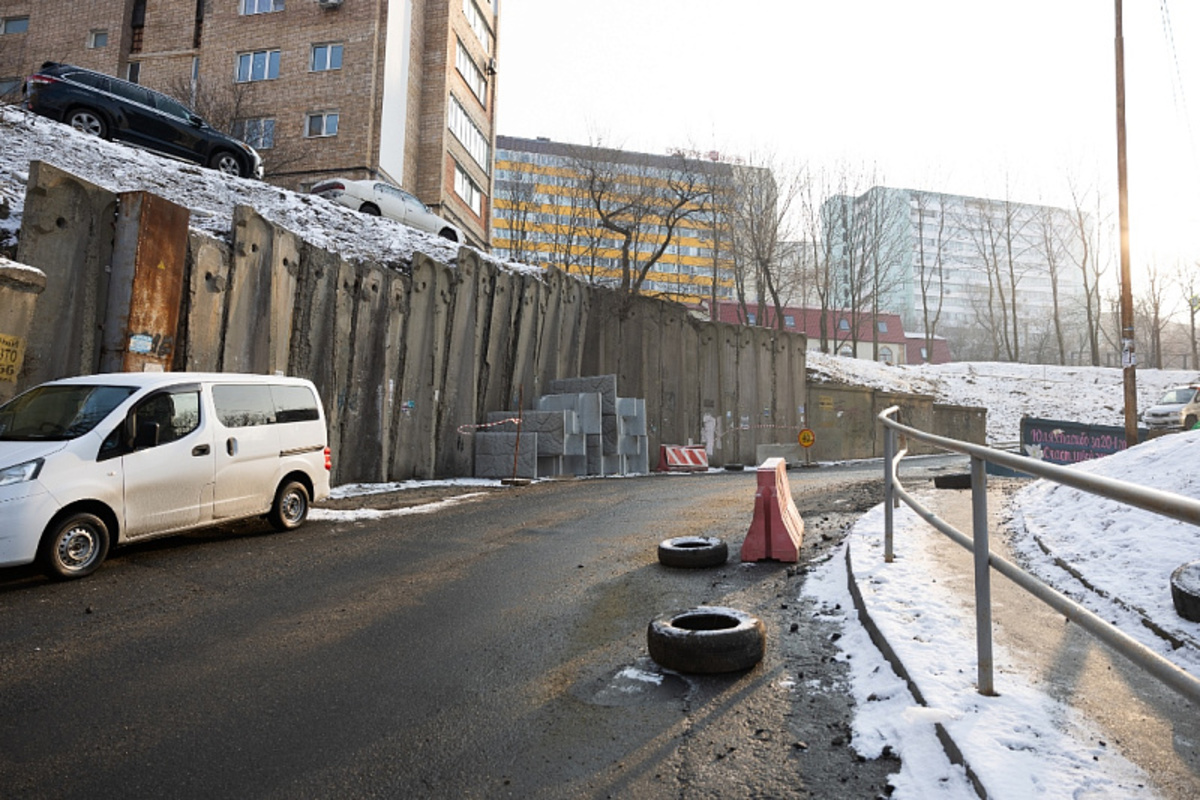 В районе дома № 5 на улице Аллилуева во Владивостоке в четверг, 23 января, временно запретили движение и парковку машин. Здесь будут строить новую подпорную стену, которая заменит прежнюю, пришедшую в негодность. Возвести новую конструкцию планируется до конца февраля.