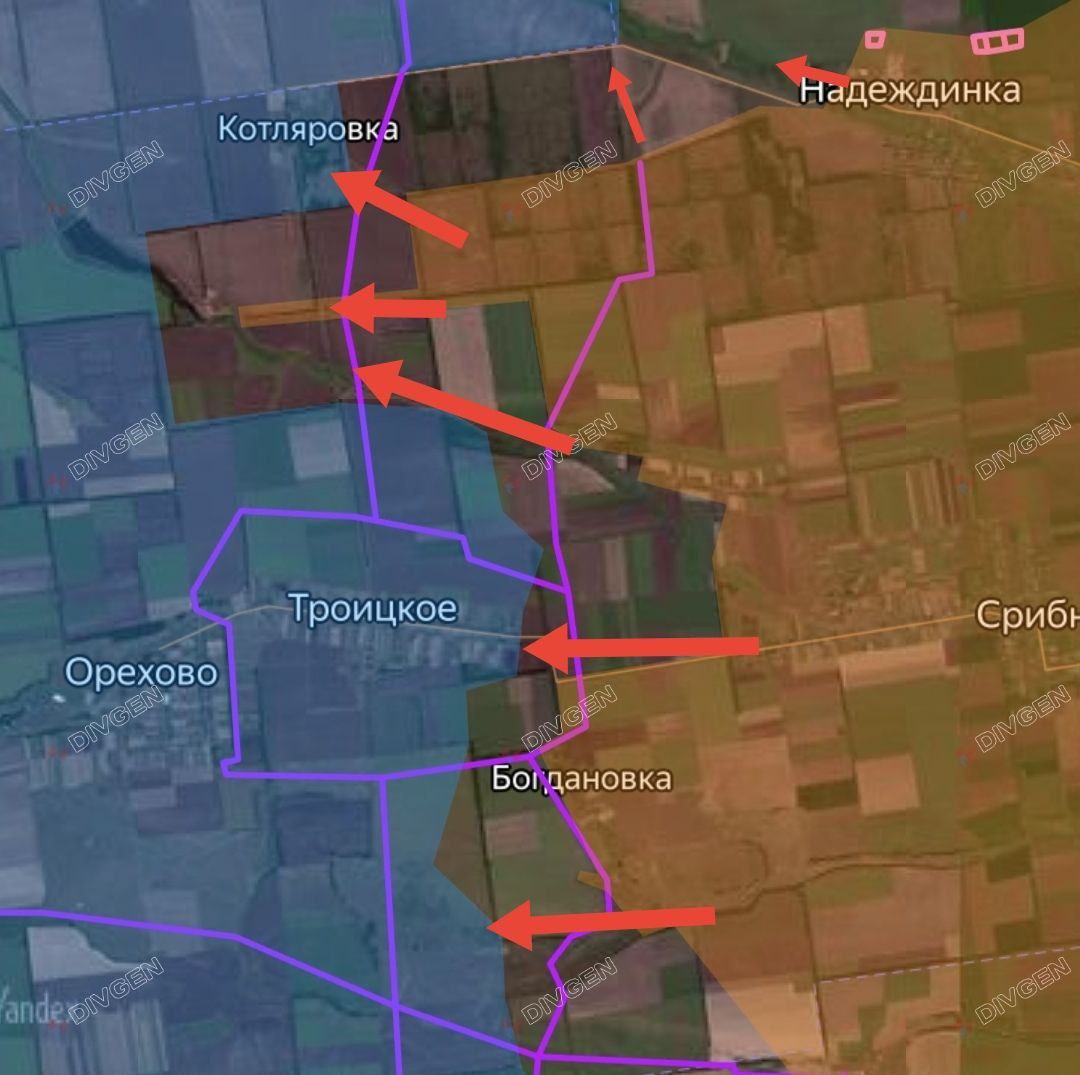В Надеждинке наши (90 тд) продавили противника на МТФ северо-западнее и ведут бои за Котляровку и южнее за балку.