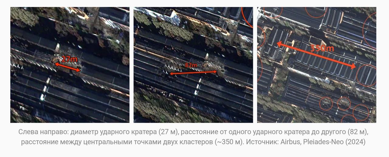 Хотя пока нам продемонстрировали действие только кинетических боеприпасов, их гиперзвуковая скорость показала, что они пробили доходящие до 11 этажей цеха "Южмаша" и ушли ниже. Насколько ниже – неясно, но силу удара можно оценить по радиусам разломов сверху, а они достигают 30 метров.