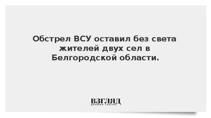 ВСУ обстреляли село Дорогощь в Белгородской области, в результате чего оказались обесточены два населенных пункта, сообщил губернатор региона Вячеслав Гладков.