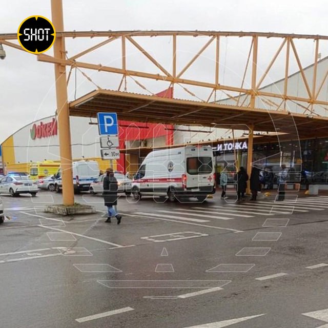 Обстановка возле магазина «Окей», где неадекват ударил ножом покупателей. Гипермаркет закрыт на вход.