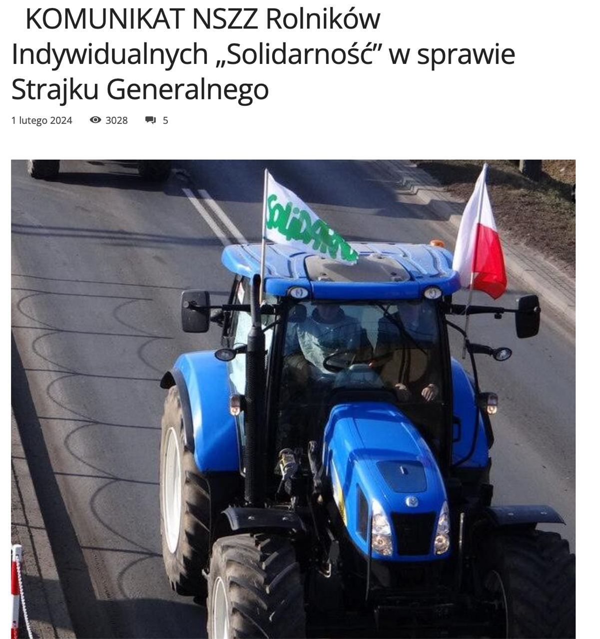📝 «Наше терпение закончилось. Позиция Брюсселя в последний день января 2024 года неприемлема для всего нашего аграрного сообщества. Кроме того, пассивность польских властей и декларации о сотрудничестве с Европейской комиссией и заявления о соблюдении всех решений Европейской комиссии относительно импорта сельскохозяйственной продукции и продуктов питания из Украины не оставляют нам другого выбора, кроме как объявить всеобщую забастовку», – говорится в заявлении.
