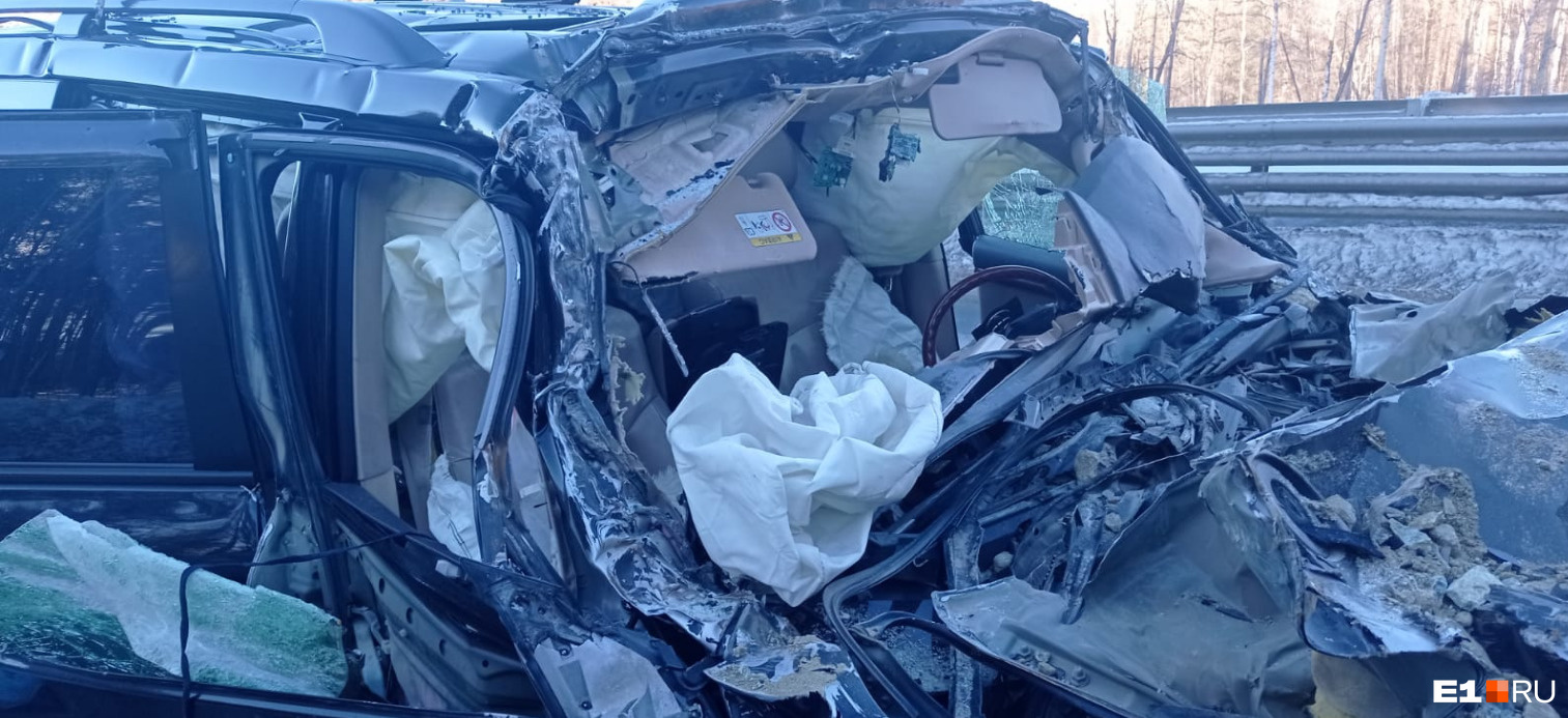 ДТП произошло на 345-м километре трассы, на подъезде к Екатеринбургу. По информации Уралуправтодора, водитель Land Cruiser врезался в грузовик Shacman, который встал на дороге из-за поломки. В ГИБДД выясняют обстоятельства аварии.