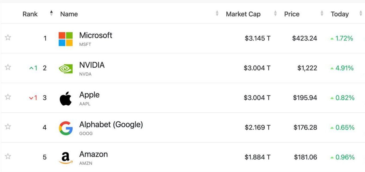 Nvidia обогнала Apple и стала второй самой дорогой компаний в мире. Акции компании выросли на 147% в этом году.