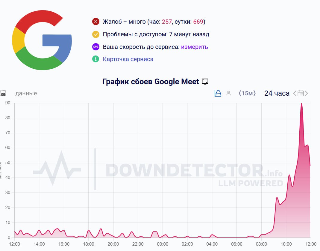 В работе Google Meet произошел сбой, следует из данных портала Downdetector.