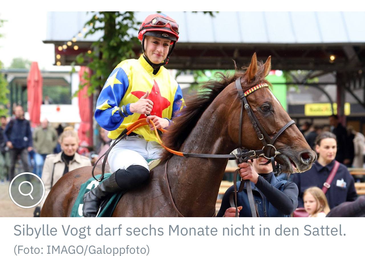 Жокей Сибилла Фогт из Швейцарии отстранена на шесть месяцев от соревнований . После того, как у нее обнаружили во время допинг-пробы следы кокаина , она предоставила объяснение: позитивный результат был получен из-за того, что у нее был половой акт с человеком, который ранее употреблял кокаин.