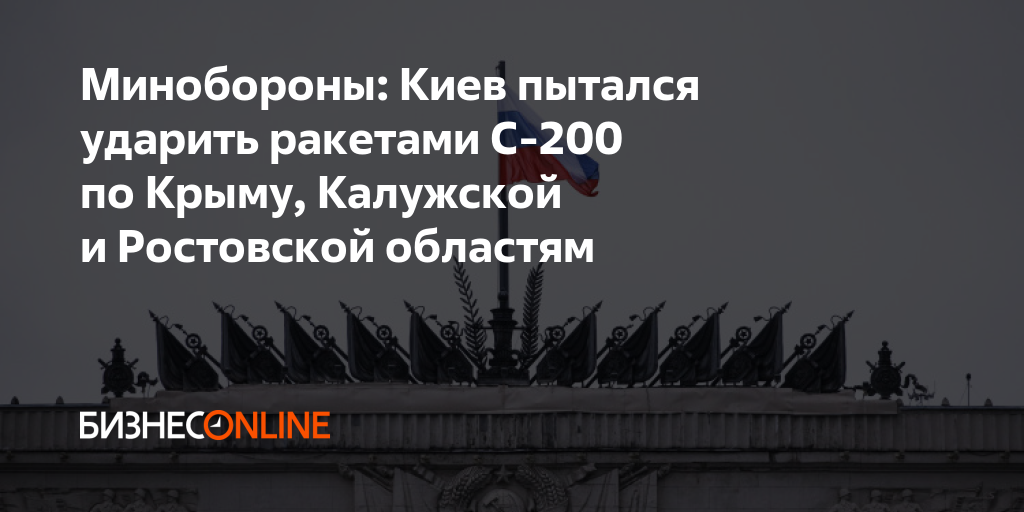 «9 июля киевским режимом предпринята безуспешная попытка нанесения ударов по объектам в Крыму, Ростовской и Калужских областях зенитными ракетами С-200, переоборудованными в ударный вариант, с целью поражения наземных целей», — говорится в официальном телеграм-канале минобороны.