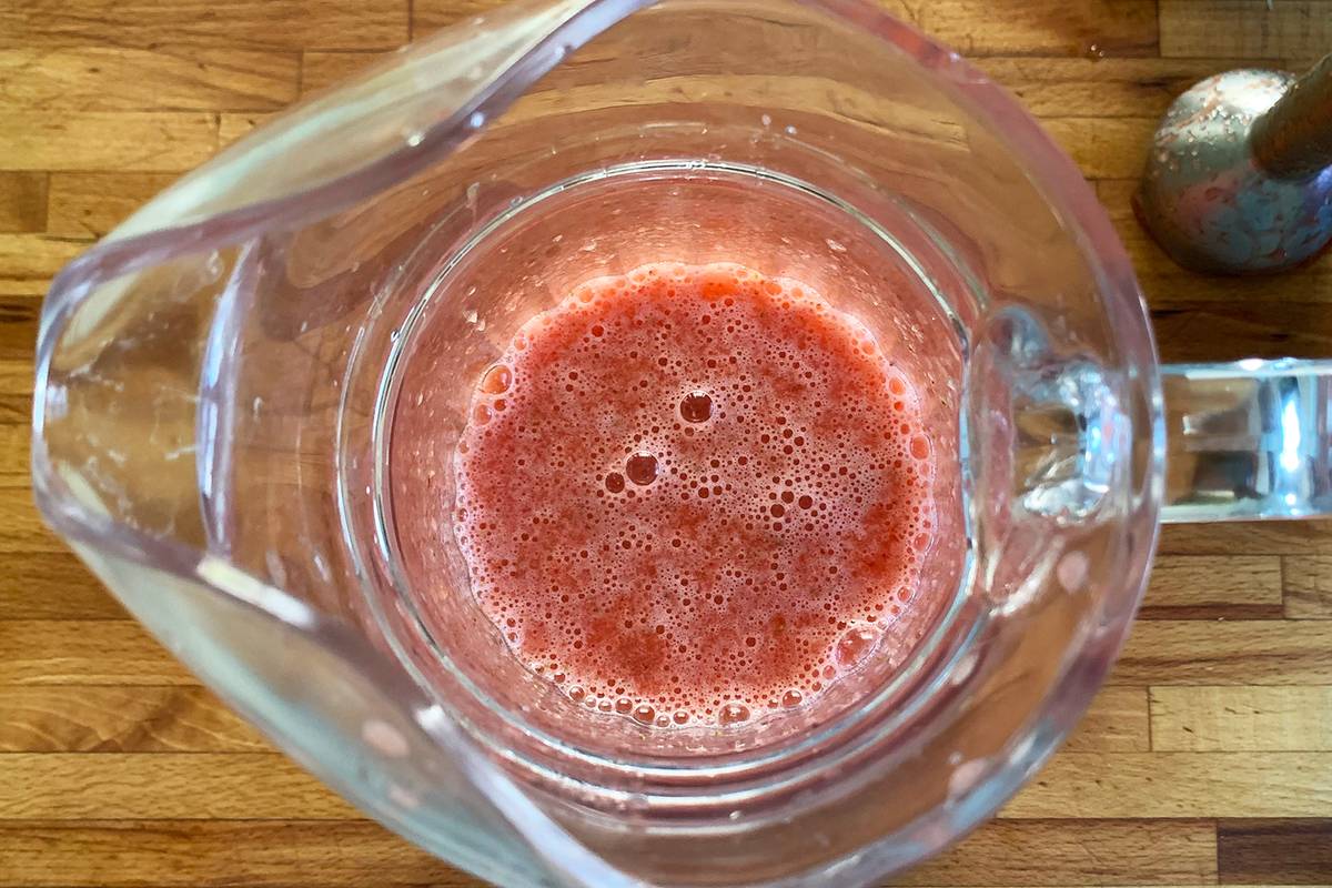 Если хотите идеально нежную текстуру без косточек, сначала измельчите клубнику и процедите пюре через мелкое сито.