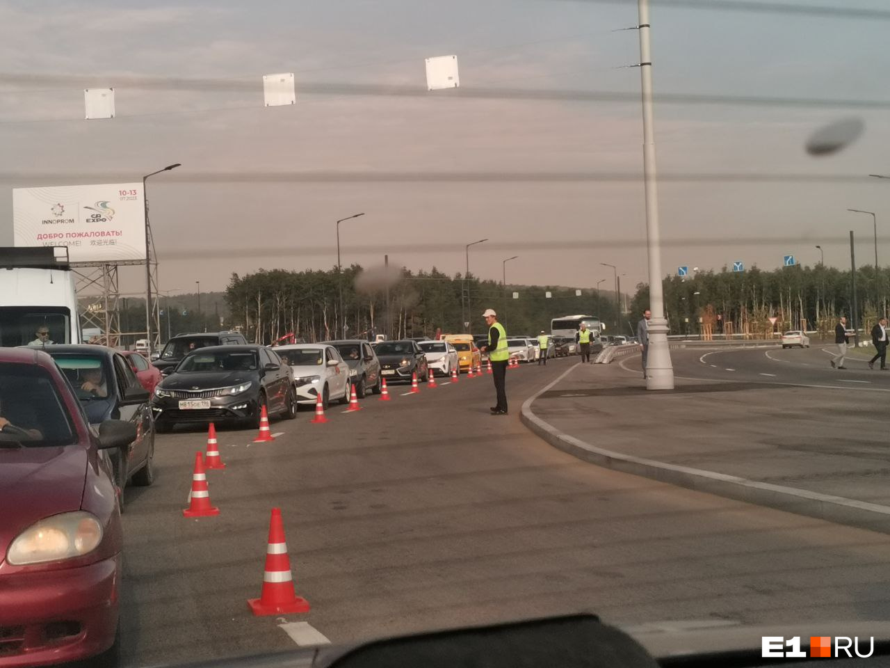 Сегодня в Екатеринбурге открылась выставка «Иннопром-2023». Желающих попасть туда в первый же день оказалось так много, что на Кольцовском тракте скопилась гигантская пробка. Автомобили стоят в три ряда и, кажется, практически не двигаются с места.