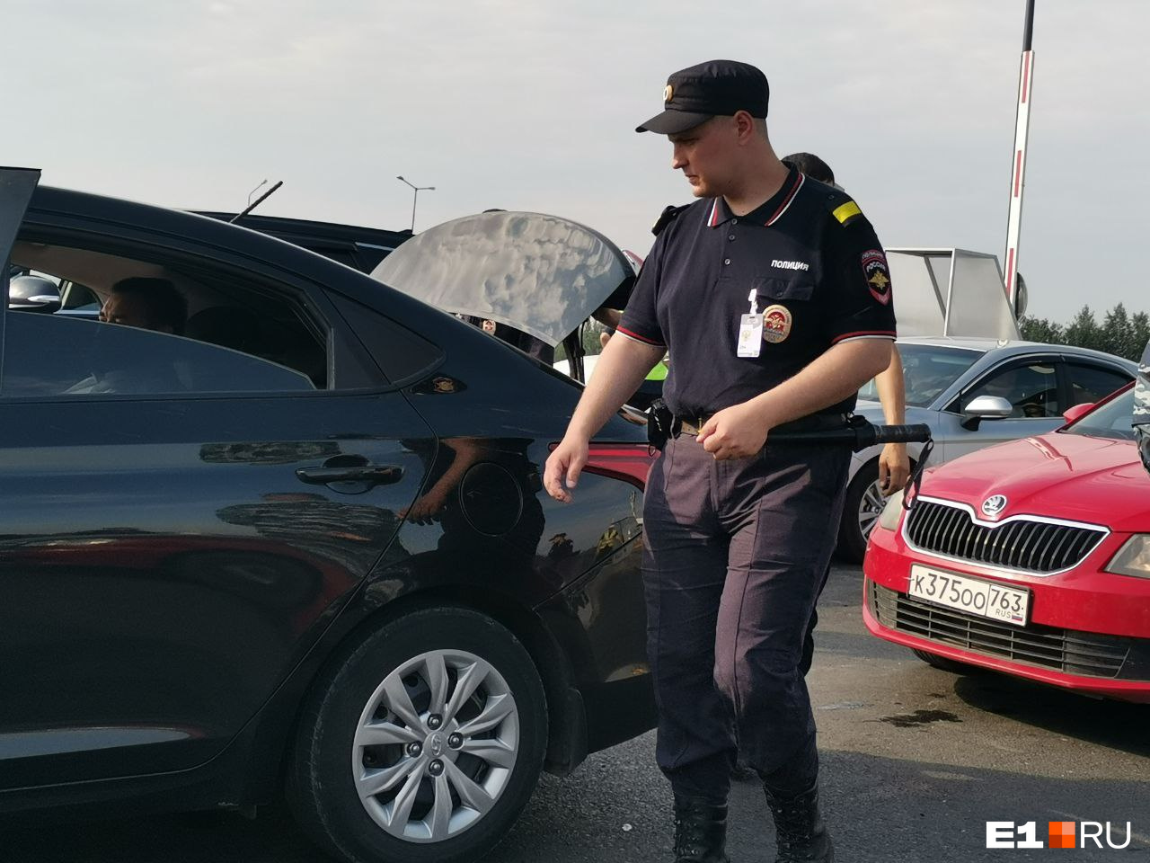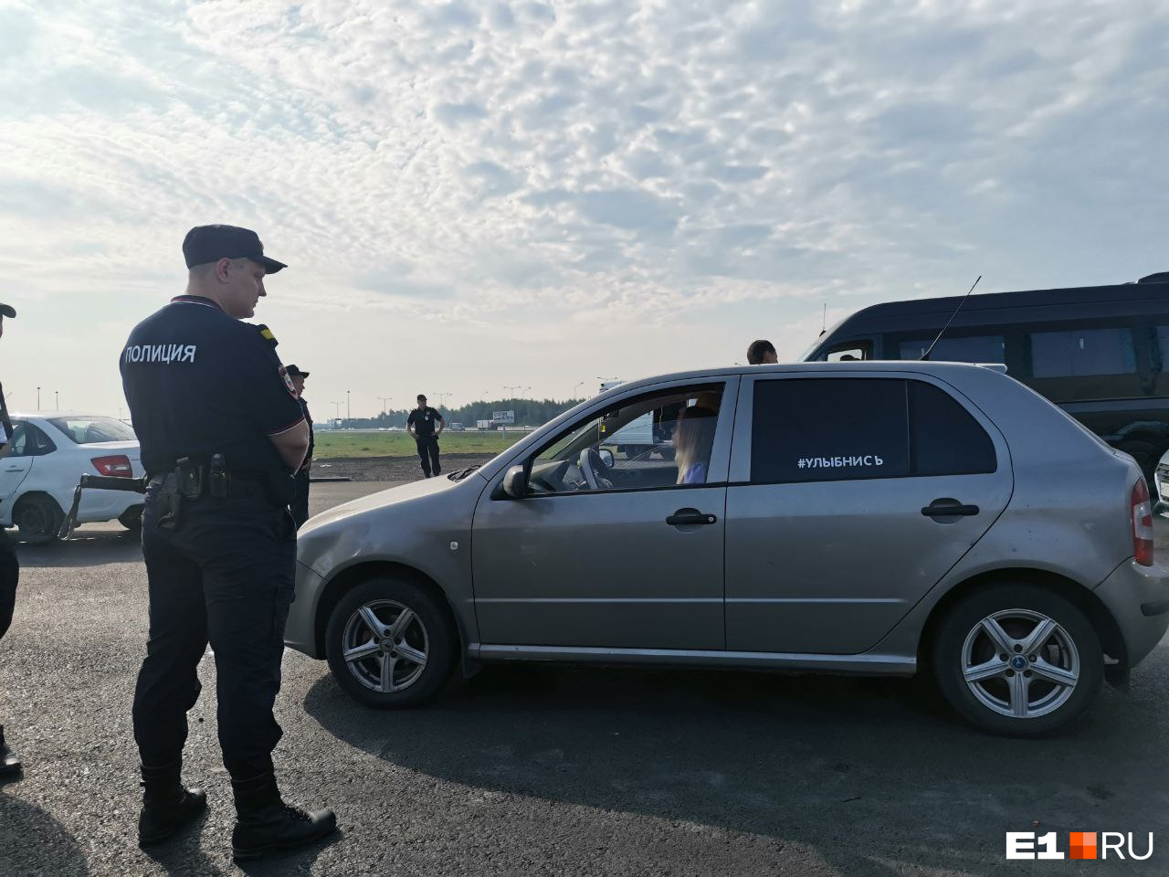 Пробка скопилась из-за того, что каждую из сотен машин на въезде тщательно досматривают.