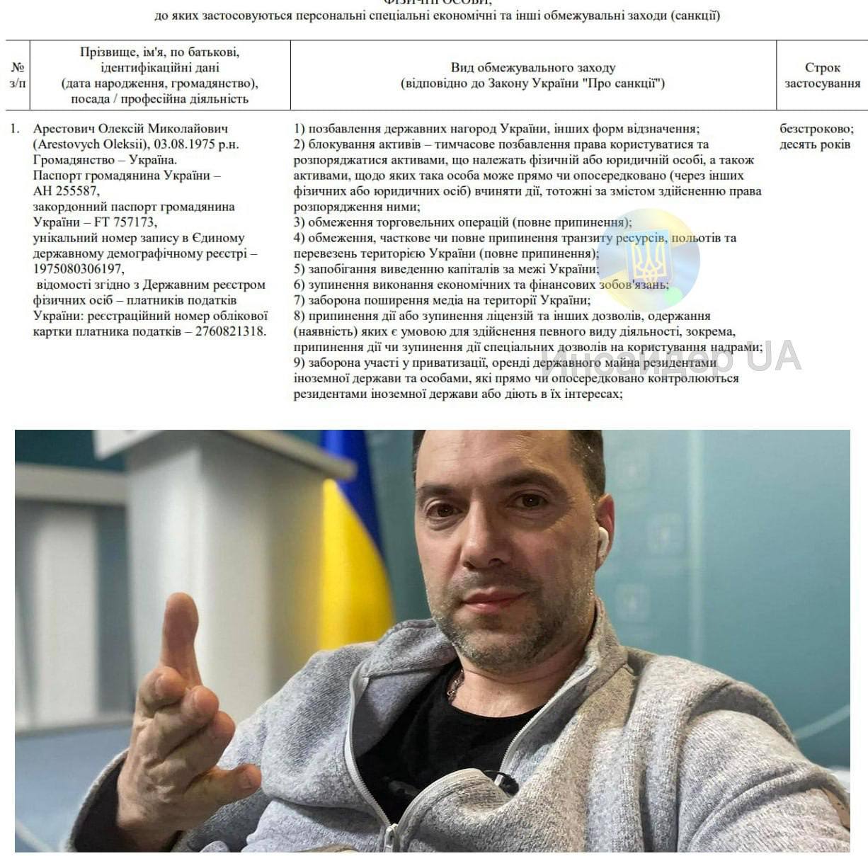 Зеленский ввёл санкции против своего бывшего советника Алексея Арестовича